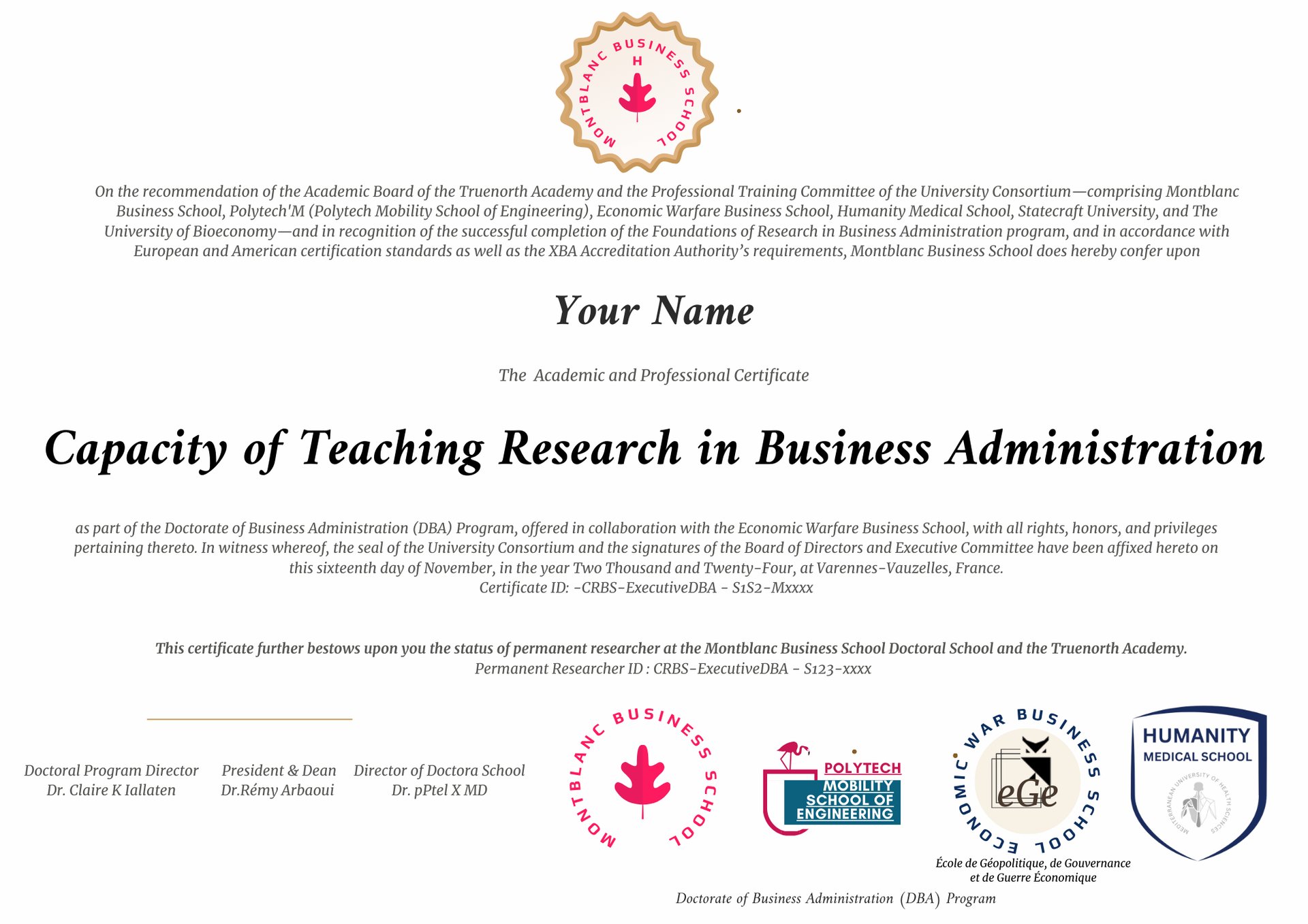 This certificate focuses on preparing candidates to become effective educators and mentors in the field of business administration research. It emphasizes the skills needed to teach complex research methods, guide students in their research projects, and create impactful academic programs.